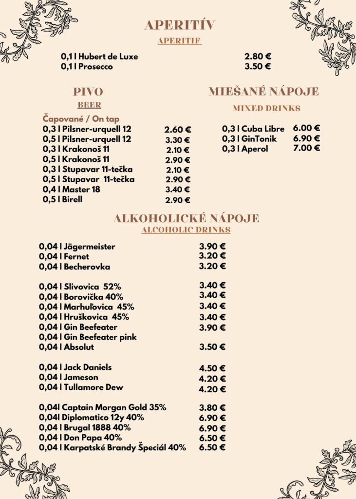 VYNIKAJÚCE Na základe 44 recenzií OVERENIE AUTA2024-03-27Trustindex overuje, že pôvodný zdroj recenzie je Google. Matka H2024-03-19Trustindex overuje, že pôvodný zdroj recenzie je Google. Podnik môžem odporučiť, veľmi príjemná obsluha a skvelá misa pre 4 osoby. Rebierka aj koleno boli výborne dochutené a musím pochváliť prílohy veľmi dobre spravené aj zemiaky aj ryža. Ctibor Sykora2024-03-19Trustindex overuje, že pôvodný zdroj recenzie je Google. Vřele doporučuji tuto malebnou restauraci. Usměvavá a milá obsluha majitelka paní Janka je super výřečná a milá paní. Jídlo skvělé a velká porce za rozumnou cenu. Tomáš Hamerský2024-03-19Trustindex overuje, že pôvodný zdroj recenzie je Google. Nejlepší restaurace v centru Bratislavy. Jídlo vynikající a super porce . Obsluha usměvavá a milá. Všem mohu vřele doporučit!!! Tereza Drstakova2024-03-13Trustindex overuje, že pôvodný zdroj recenzie je Google. Méchin Jézabel2024-03-07Trustindex overuje, že pôvodný zdroj recenzie je Google. Très belle surprise, ambiance et repas très bien. Bon moment pour faire une pause et manger local. Sajmon _2024-03-06Trustindex overuje, že pôvodný zdroj recenzie je Google. Příjemná obsluha a skvělé jídlo, můžu jen doporučit. tomas tom2024-03-02Trustindex overuje, že pôvodný zdroj recenzie je Google. Vynikajúca a usmievavá obsluha,jedlo výborne. Ceny za jedlo a pitie sú prijateľné na lokalitu. Môžem len odporučiť a určite sa vrátime. Alexander Majerik2024-03-01Trustindex overuje, že pôvodný zdroj recenzie je Google. Skvelá nenápadná reštaurácia v centre mesta, určite odporúčam! Kuchár varí na jednotku 😊 jakub2024-03-01Trustindex overuje, že pôvodný zdroj recenzie je Google. výborné jedloa skvelá obsluha
